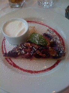 Greek yoghurt sorbet, isn’t that just a fancy way of saying frozen yoghurt? It came with an excuse from the waiter (who I’ll get to later) that it had not been made long ago so was served in a small (chipped!) ramekin and was a little runny. Surely if they knew they were going to have a busy service this should have been prepared well in advance?! The pie didn’t have strong flavors, in fact it was quite bland but the texture is always a winner.