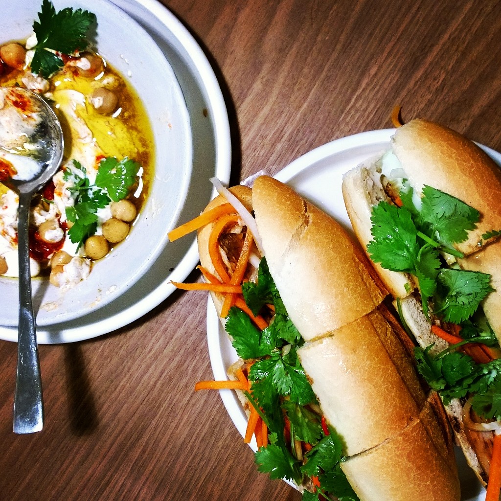 I was invited to lunch at Commune at Goodhood this week, a partnership that intrigued me. I had a feeling that Brett’s food would work perfectly in the pared back environment of the Goodhood store, so I wasn’t disappointed when I arrived. I was dining with a few other bloggers and journalists and we shared a few of the dishes on offer in the cafe, including burrata, basil, beetroot & chicory salad; chickpea, harissa, honey and coriander; Vietnamese banh mi and a few of the open faced sandwiches. I also enjoyed a flat white and delicious watermelon juice.