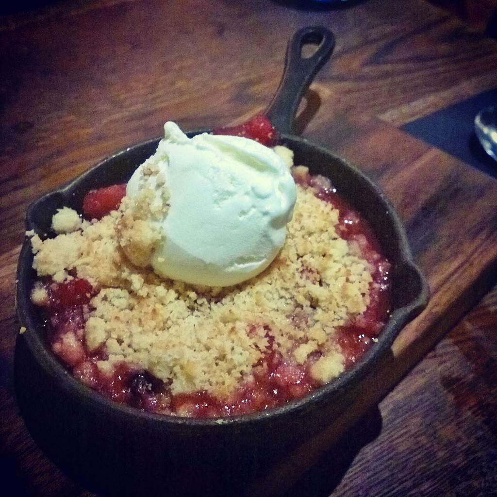 For dessert I ordered a crumble, which I struggled to eat as the portion was so large, but Abi once again chose well with the ‘Wagon Wheel’, a small but perfectly formed dessert of toasted meringue, raspberry sorbet and shortbread.